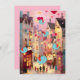 A charming evening scene in a quaint village courtyard with vibrant balloons and birds carrying love letters. Warm lights illuminate the street as people gather under festive decorations.