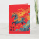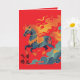 To the left of the running horse are bold black calligraphic characters, 飞黄腾达. Mythic, fiery, and elegant.