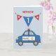 Tarjeta Sobrino auto de la policía azul en el primer cumpl