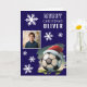 Score big this holiday season with our festive and personalized Soccer Ball Santa Hat Christmas Card! This delightful card features a classic black and white soccer ball adorned with a cheerful Santa hat, set against a blue background with falling snowflakes. A special photo frame allows you to easily add your child's picture, making it a truly unique keepsake. Customize the 'MERRY CHRISTMAS OLIVER' text to include any name, celebrating your little football fanatic. Perfect for sending holiday greetings to family and friends, this card is sure to bring smiles and show off their love for the game during Christmas.
