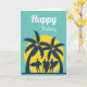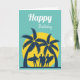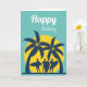 Escena de playa con palmeras, surfistas y el sol. Perfecto para los amantes del surf.