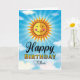 Tarjeta solar sonriente amarilla de cumpleaños de