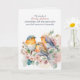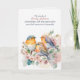 Aves azules con flor rosa en un efecto acuarela sobre un fondo blanco suave. Gracias de la familia por las tarjetas, regalos, donaciones y flores recibidas. El texto es editable.