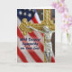 Cuando la tragedia golpea con la pérdida de alguien en el ejército es un momento muy triste. Ofrezca condolencias con esta tarjeta cristiana que representa a un crucifijo de oro sobre una bandera estadounidense. Esta tarjeta consolará a los afligidos.