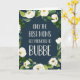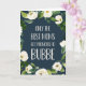 ¡Solamente las mejores mamás son promovidas a Bubbe! Celebra el Día de la Madre, el Día de los Abuelos o una nueva abuela para estar con esta dulce tarjeta de saludo que lleva el sentimiento en letras blancas en un fondo azul marino acentuado con flores blancas y acuarelas de marfil y un frondoso follaje botánico. Agregue una foto opcional y un mensaje preimpreso al interior para crear un saludo personalizado único para Bubbe.