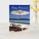 Tarjeta fotográfica con paraguas de playa y asientos de salón - perfecto para vacaciones, despedidas y retiros - personalizar frontal y mensaje interior.