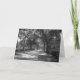 Un estudio en blanco y negro presenta una tranquila carretera de Savannah sombreada por robles cubiertos de musgo.