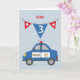 Tarjeta Son 3 años, auto de la policía azul