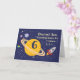 ¡Cumplir 6 años está fuera de este mundo, sobre todo cuando es tu hijo! Un barco con cohetes, planetas y estrellas llenan la parte delantera de la tarjeta con el mensaje mientras se cuenta para decir ¡Feliz Cumpleaños!