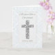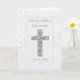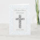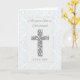 Una hermosa tarjeta para celebrar la cristalización de un bebé, con una elegante cruz de aspecto alzado con un torbellino patrón blanco sobre plata, enmarcada por una suave rodadura azul. La parte delantera dice "Mientras tu hijo es cristiano" e incluye un espacio debajo de la cruz para una fecha personalizado, lo que lo hace un conservador significativo. Perfecto para compartir bendiciones en este importante día de fe y familia.