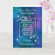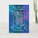 Celebra la graduación de la universidad de tu hijo de una manera especial con esta tarjeta personalizada, ¡con su nombre delante y centro! El diseño presenta un mensaje inspirador sobre su dedicación y el futuro brillante que se avecina. El texto blanco y nítido está enmarcado por una gorra, diploma y estrellas, brillando sobre un hermoso fondo acuarela de azul, púrpura y verde. Un preciado conservador que honra perfectamente sus logros y lo inspira para lo que viene a continuación.