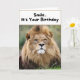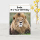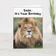 Una tarjeta de cumpleaños divertida con un león gruñón.