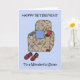 Una tarjeta linda para desear a cualquier hermana muy amada un retiro muy feliz. Un sillón personalizado recubierto de forma de chintz, con zapatillas, mando a distancia y taza.