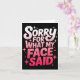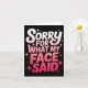 Tarjeta Sorry For What My Face Said Funny Sarcastic Minima