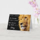 La parte delantera de esta tarjeta tiene una imagen de cerca de la cara de un león macho sobre un fondo negro, y una cita de una persona desconocida sobre el amor de una hija por su padre: Soy una princesa no porque tenga un príncipe sino porque mi padre es un rey.