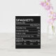 Tarjeta Spaghetti Nutrition Hechos Graciosos Día de Acción