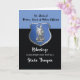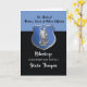 Felicitar y enviar bendiciones al nuevo policía estatal. Una imagen de San Miguel con una insignia plateada está en el centro de la tarjeta azul y negra. St. Michael es el santo patrocinador de los agentes del orden.