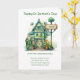 Con una preciosa tarjeta del Día de San Patricio con una caprichosa imagen de San Patricio parado al lado de su cabaña en irlanda. Se pueden modificar todo el texto y las fuentes.