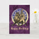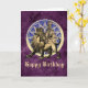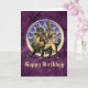 El diseño inspirado en el Steampunk presenta un león dorado en sombrero superior con un reloj grande y una ventana ornamentada de estilo portal sobre fondo celestial morado. Personalizar con su propio saludo de cumpleaños o de baja como está