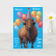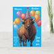 Un saludo de cumpleaños con un majestuoso bisonte americano en un gorra fiesta, que ofrece humor seco sobre el envejecimiento y la resiliencia. Perfecto para los que aprecian el ingenio y la vida salvaje. contenido generativo.