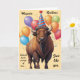 Un saludo de cumpleaños con un majestuoso bisonte americano en un gorra fiesta, que ofrece humor seco sobre el envejecimiento y la resiliencia. Perfecto para los que aprecian el ingenio y la vida salvaje. contenido generativo.