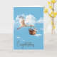Tormenta volando en nubes con un niño en una canasta de mimbre. Se puede cambiar todo el texto.