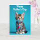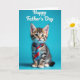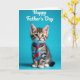 The front design shows a small tabby kitten facing forward with a gentle, inviting look that feels like a quiet moment of friendship. Its big green-gold eyes catch the light, drawing you in as if it’s holding eye contact with someone it trusts. A tiny striped necktie in red and blue sits neatly at its neck like a little 👔, adding a sweet, dressed-up touch. The fur is soft-looking with brown and black stripes, and the fine whiskers stand out clearly against the smooth blue background. The background is a bright cerulean tone that fades evenly, giving the scene an airy, open setting with no distractions. Near the top, a short message appears in white lettering, centered and easy to spot against the blue. The lighting comes from the front, making the kitten’s face and tie shine while the edges fall slightly softer, like a close-up portrait meant to feel intimate 👨. The cerulean background stays uninterrupted, with the white text sitting above the kitten’s head and the red-and-blue tie centered below its chin.