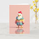 This card features a cute, stylized little bird centered on a wide field of blush pink, with a soft, even background that keeps the focus on the character 🌷. The bird has a fluffy-looking white body, big black eyes that feel friendly and a little shy, and a sunny yellow beak shaped like it’s about to say hello. A bright red crest sits on top like a jaunty accent, adding a flirty touch to the gentle face. It’s dressed in a puffy jacket made of pastel panels in sky blue, warm yellow, and rosy pink, giving it a cozy, “wearing your favorite coat” kind of charm 🐰. A pink zipper runs straight down the center of the jacket, acting like a neat vertical line that guides your gaze. The lighting is soft and bright, with a faint shadow beneath the feet that makes the character feel present and close. The bird’s small yellow feet stand on a glossy surface that reflects the whole figure like a mirror, with the jacket colors and red crest clearly echoed below.