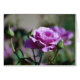 Un rosa hermoso de la lavanda adorna esta tarjeta en el frente y un rosa rojo precioso honra la parte posterior de esta tarjeta.
