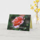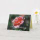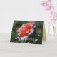 Un rosa melocotón-coloreado hermoso adorna esta tarjeta en el frente, y un rosa amarillo precioso honra la parte posterior de esta tarjeta.