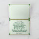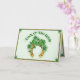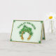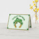 Treboles de la suerte y una herradura dorada con acento de cinta verde. El texto dice... Suerte del Irlandés. Más regalos y franqueo disponibles en este diseño. Verso interior.