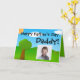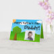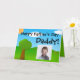 Adorable tarjeta para el Día del Padre de los Niños puede personalizar en línea agregando su propia foto digital. ¡Simplemente sube una imagen! Escena de verano o primavera soleada con hierba verde, un árbol verde, cielo azul con nubes y sol, y flores en el campo. Divertida y alegre tarjeta de verano del padre de cualquier hijo o hija.