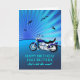 Feliz cumpleaños medio hermano con una moto. Una tarjeta perfecta para un ciclista. Una moto azul con una puesta de sol estilizada y pájaros voladores. A cualquier aficionado a la bicicleta le encantará conseguir una tarjeta como esta.
