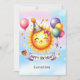 Haga especial a los cumpleaños con nuestro Sunshine Custom Name Happy Birthday Greeting Card! Con un sol sonriente usando un gorra de cumpleaños rodeado de decoraciones, globos, estrellas y mucha alegría y diversión.
