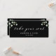 Fuente de caligrafía negra con florituras contra papel blanco crujiente para tarjetas de gráfico de mesa.