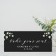 Fuente de florituras escritura de caligrafía negra contra papel blanco crujiente para tarjetas de gráfico de mesa.