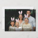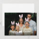 Superposición gráfica de orejas de conejo personalizable para fotos de Pascua diseñada por Destei. Agrega tu propia foto y coloca las orejas de conejo móviles sobre cada persona ya que esto no sucederá automáticamente. La parte inferior dice "¡Feliz Pascua!" en blanco con una pequeña silueta de conejo blanca entre las palabras, seguido de espacio para un nombre y año. Utilice las herramientas de edición de Zazzle para mover, cambiar de tamaño, eliminar o duplicar las orejas para que se ajusten perfectamente a tu foto.