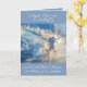 El frente de esta tarjeta de solidaridad para ayudar a consolar a alguien que está de duelo por la pérdida de un ser querido tiene un hermoso cielo azul con rayos solares brillando a través de las nubes y dice Whisper te amo a una mariposa y volará al Cielo para entregar tu mensaje. Inside dice Forever en nuestros corazones.