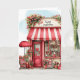 Personalize your special Valentine with this sweet folded greeting card printed with a quirky little flower shop filled with lots of cute little hearts and potted flowers details. Watercolor style illustration has an abstract pastel background front and back. Just edit your name text on the shop front and message inside, Created in a palette of mostly reds and white colors, with your choice of sizes.