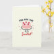 This card features a pastel pink frosted cake centered on a stark black cake stand, set against a muted creamy background that feels soft and inviting 🥰. Above the cake, the text “YOU ARE THE” sits in simple, dark lettering with clear spacing, like a neat title hovering over the dessert. Below, “Sweetest!” appears in rich crimson lettering with a flowing look, curving gently under the stand and adding a romantic pop of color ❤️. Five glossy red strawberries line the top of the cake, their deep ruby tone echoing the small red hearts scattered around the main image. White heart sprinkles dot the pink frosting, giving the surface a lightly textured, sugary finish. The contrast between the tidy top line and the more flowing word below creates a sweet push-and-pull, like two people leaning toward each other. The whole scene stays focused and cozy, with pinks, reds, and soft whites standing out clearly on the creamy backdrop. Tiny red hearts float near the cake while the black stand anchors everything at the bottom.