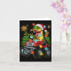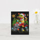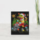 Tarjeta T-rex Santa In Monster Truck With Christmas Trees