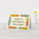 Esta tarjeta de felicitación está lista para ser personalizada con tu propio mensaje en la parte frontal y en el interior de la tarjeta para que puedas crear la tarjeta perfecta para cumpleaños o cualquier ocasión. Cuenta con sencillas ilustraciones de tablas de skate longboard con un estilo retro en tonos de naranja, dorado mostaza, verde salvia, oliva y azul turquesa.