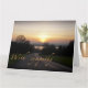 Una imagen llana y simple con todo móvil que muestra una puesta del sol brillante con un camino que lleva en un lago abajo. Esconda el interior para su saludo poseido