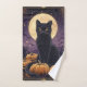 Diseño de ilustracion de tarjetas tarot con temática de Halloween con gato negro, luna llena y calabazas.