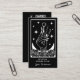 Una única tarjeta de negocios negra tecnológica con estilo de tarot tecnológico. Una mezcla de estilo único del tarot y su ocupación. Medios sociales, Código QR.