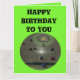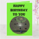 Se presenta un bol negro de césped con un juego de bowls sobre césped invertido en el Bowls con un logo de feliz cumpleaños.