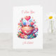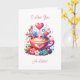 Tarjeta de El día de San Valentín o aniversario personalizada. Café con corazones y flores. El día de San Valentín o tarjeta de aniversario para ella. Dos lindos granos de café por dentro. Agradables y adorables juegos de palabras de "amor y café".