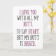 Te amo con todo mi trasero. Diría corazón, pero mi trasero es más grande.