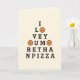 Sirva un poco de cariñoso cariño con esta audaz carta de amor por la pizza. El frente presenta "Te amo más que la pizza" mezclada en forma de triángulo de porción de pizza, con mini pizza "O". En el interior, en el lado izquierdo hay una deliciosa pizza con pepperoni, mientras que en el lado derecho hay un texto que dice: "Eso es mucho. Feliz cumpleaños". Haga clic en "Personalizar esta plantilla" para personalizar el texto interno en cualquier ocasión, o en ninguna. Perfecto para cumpleaños, El día de San Valentín, un aniversario, notas de amor, o simplemente porque.