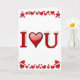 Tarjeta del día de San Valentín con Te Amo en texto rojo 3D. Personalízala con tu propio texto dentro.